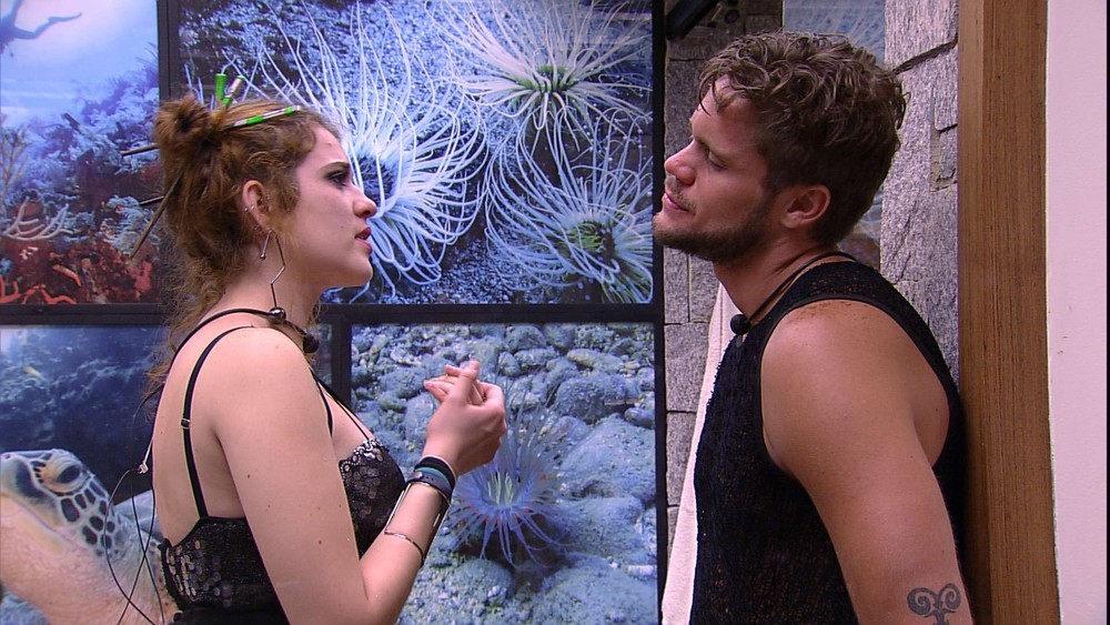Alemão tentou de tudo para ficar com Iris no 'BBB' 7,mas a sister não cedeu às investidas por ter medo do que a família iria pensar. Quando ela foi eliminada,em um paredão contra ele,se despediu com um selinho,cena aguardada há tempos pelo Brasil — Foto: Reprodução/Globo