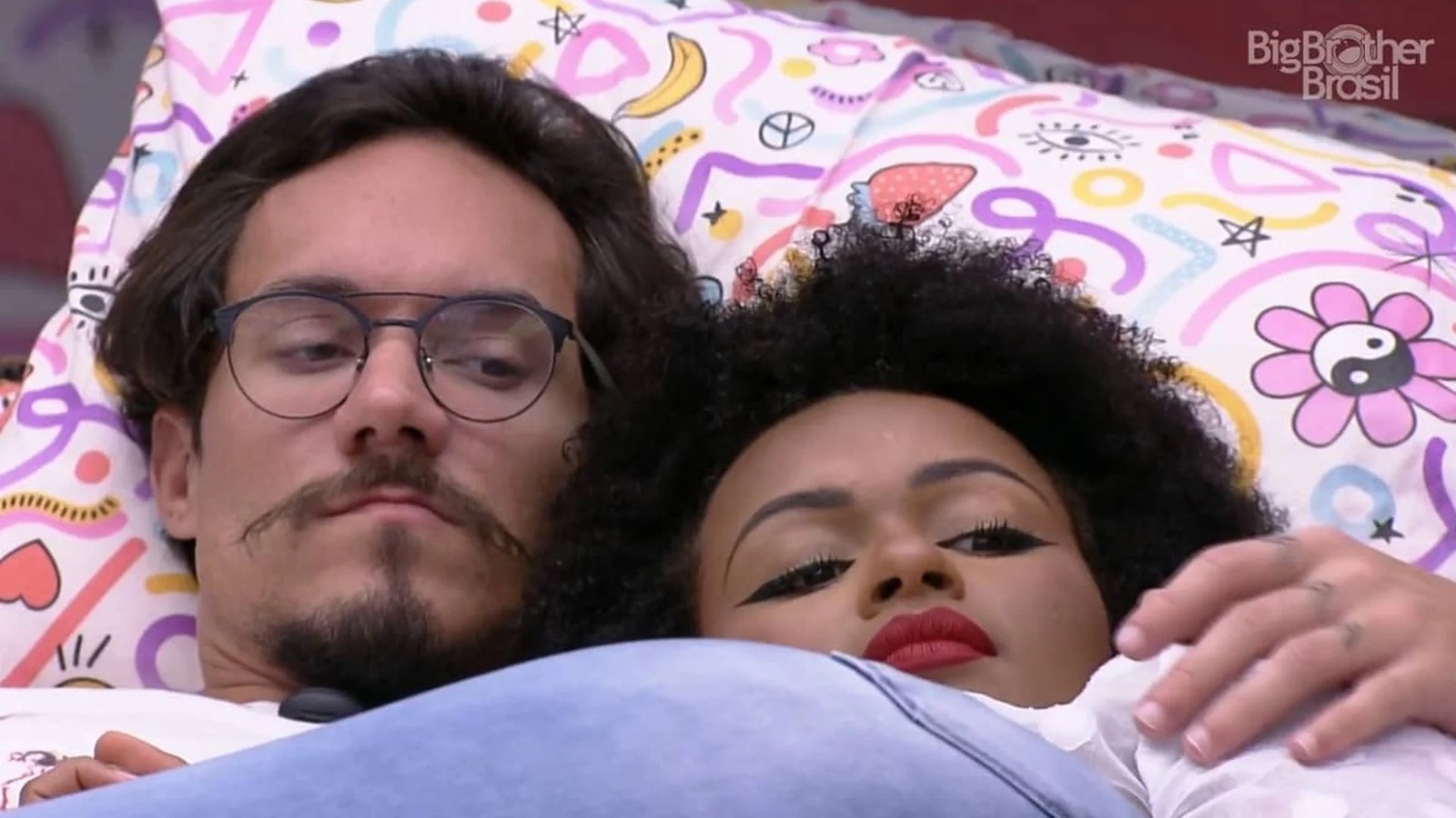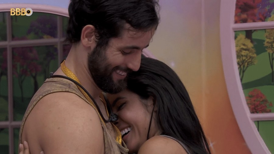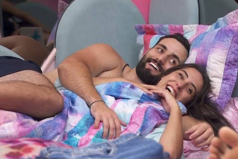 Depois da saída de Maria do 'BBB' 22,Eliezer formou um novo casal. Ele se aproximou de Natália e os dois também foram para debaixo do edredom em alguns momentos. O relacionamento sofreu críticas dentro e fora da casa,já que afirmavam que o brother estaria interessado apenas na proteção no jogo — Foto: Reprodução/Globo
