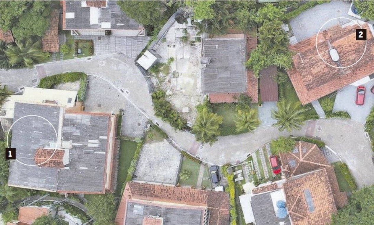 Marcada com o número 1,a casa 58 pertence a Jair Bolsonaro,no Vivendas da Barra; o imóvel fica perto da casa 66,marcada com o 2,de Ronnie Lessa. O outro suspeito do crime disse que iria à casa de Bolsonaro — Foto: Arquivo O Globo