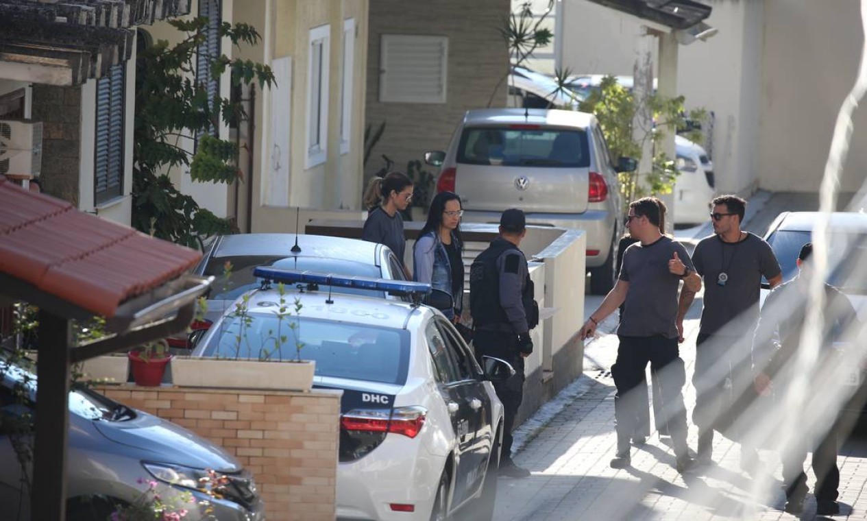 Prisão de Elaine de Figueiredo Lessa (centro),a esposa de Ronnie Lessa — Foto: Fabiano Rocha/Agência O Globo
