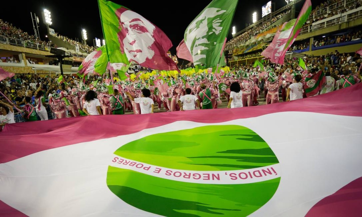 Mangueira 2019 levou à Avenida a expressão 'Marielle Presente',uma síntese da comoção pelo assassinato — Foto: Gabriel Monteiro/Agência O Globo
