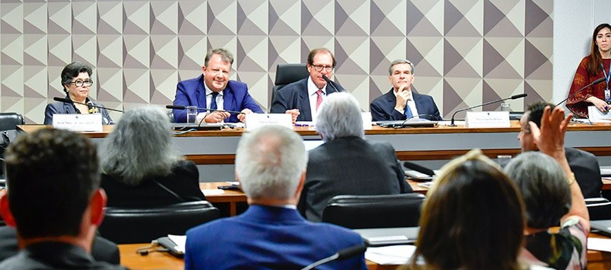 A comissão de juristas discutindo as propostas para o novo Código Civil no Senado — Foto: Agência Senado