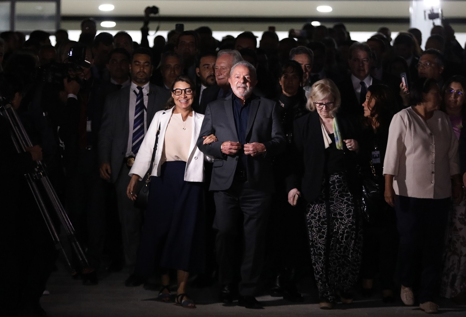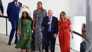 Presidente Lula,a primeira-dama Janja,em cerimônia de posse de Anielle Franco e Sônia Guajajara como ministras — Foto: Sergio Lima / AFP