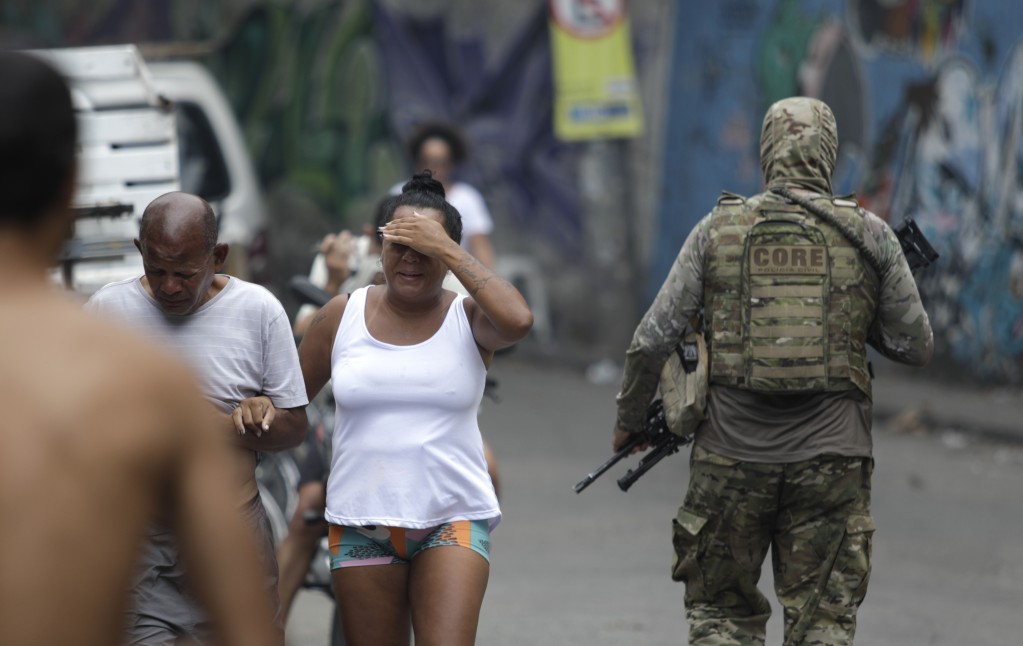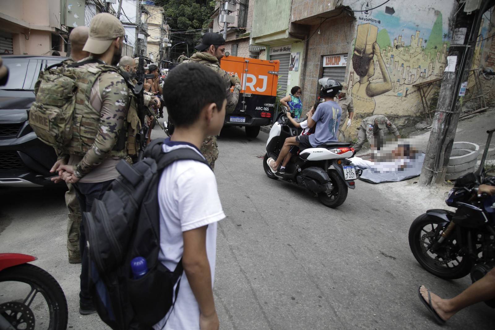 Ladeira dos Tabajaras: Mulher cobre rosto de criança durante retirada de corpo em operaçãoAção da DHC e da Core: Entenda em seis pontos operação na Ladeira dos Tabajaras que matou chefe do tráfico e levou pânico a moradores da Zona Sul
