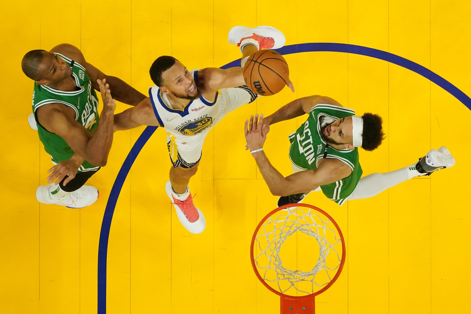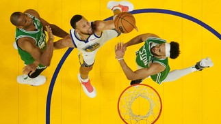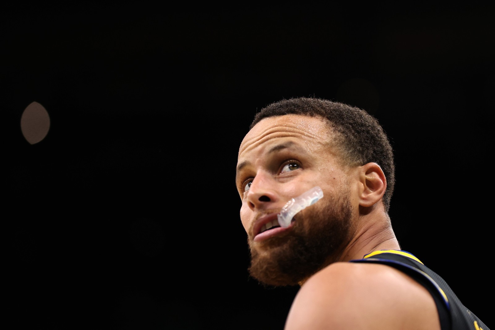 Stephen Curry,do Golden State Warriors durante o jogo três das finais da NBA contra o Boston Celtics — Foto: Maddie Meyer/Getty Images/AFP