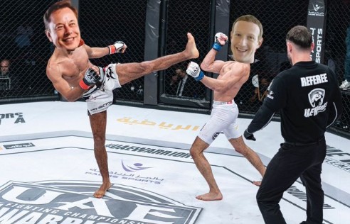 Publicidade Luta entre Mark Zuckerberg e Elon Musk vira meme na internet