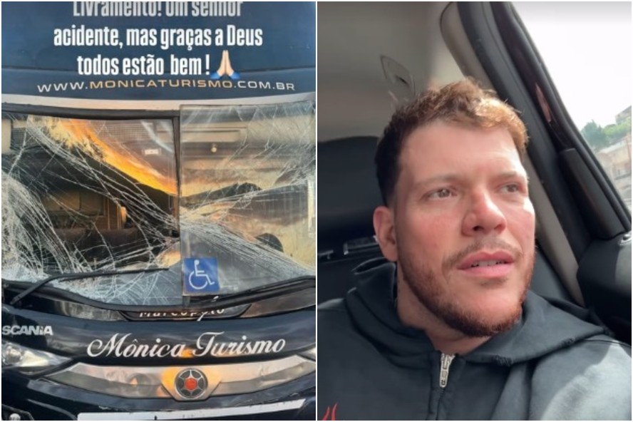 "Galera,exatamente isso aí que vocês viram. Nosso ônibus acabou sofrendo um acidente,e destruiu tudo ali na frente do ônibus,a porta foi arrancada. Mas,graças a Deus,ninguém se machucou,está todo mundo bem. Mas não aconteceu nada que impeça nosso show em Arrarial do Cabo hoje",afirmou o cantor.