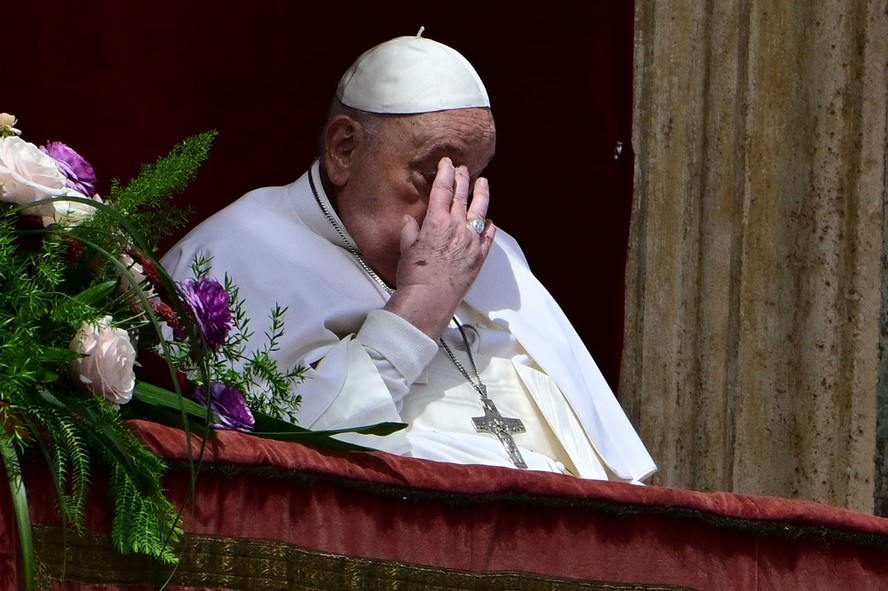 O Papa Francisco durante a bênção para a cidade e o mundo nas celebrações da Páscoa,na Praça de São Pedro,no Vaticano — Foto: Foto de Tiziana FABI / AFP