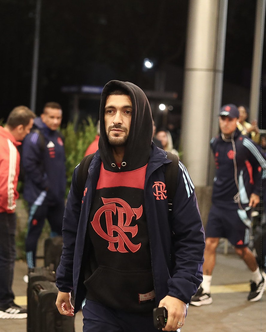 Arrascaeta em embarque para o Equador — Foto: Flamengo