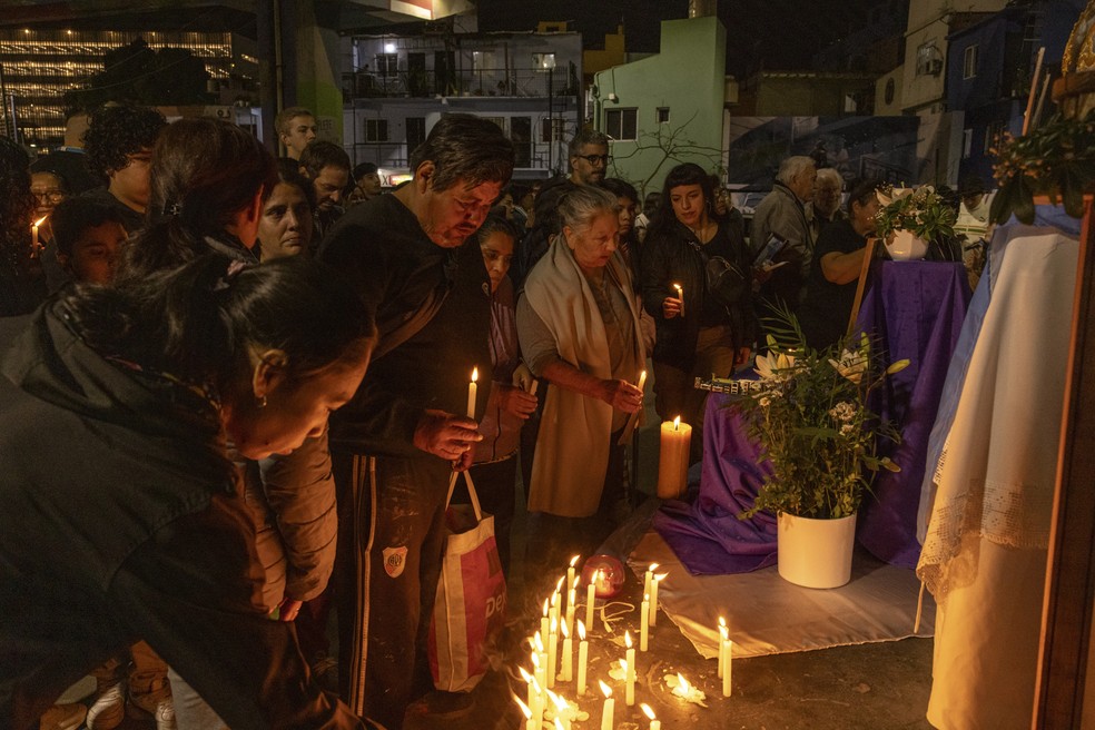 Católicos argentinos acendem velas em homenagem ao Papa Francisco — Foto: Sarah Pabst/The New York Times