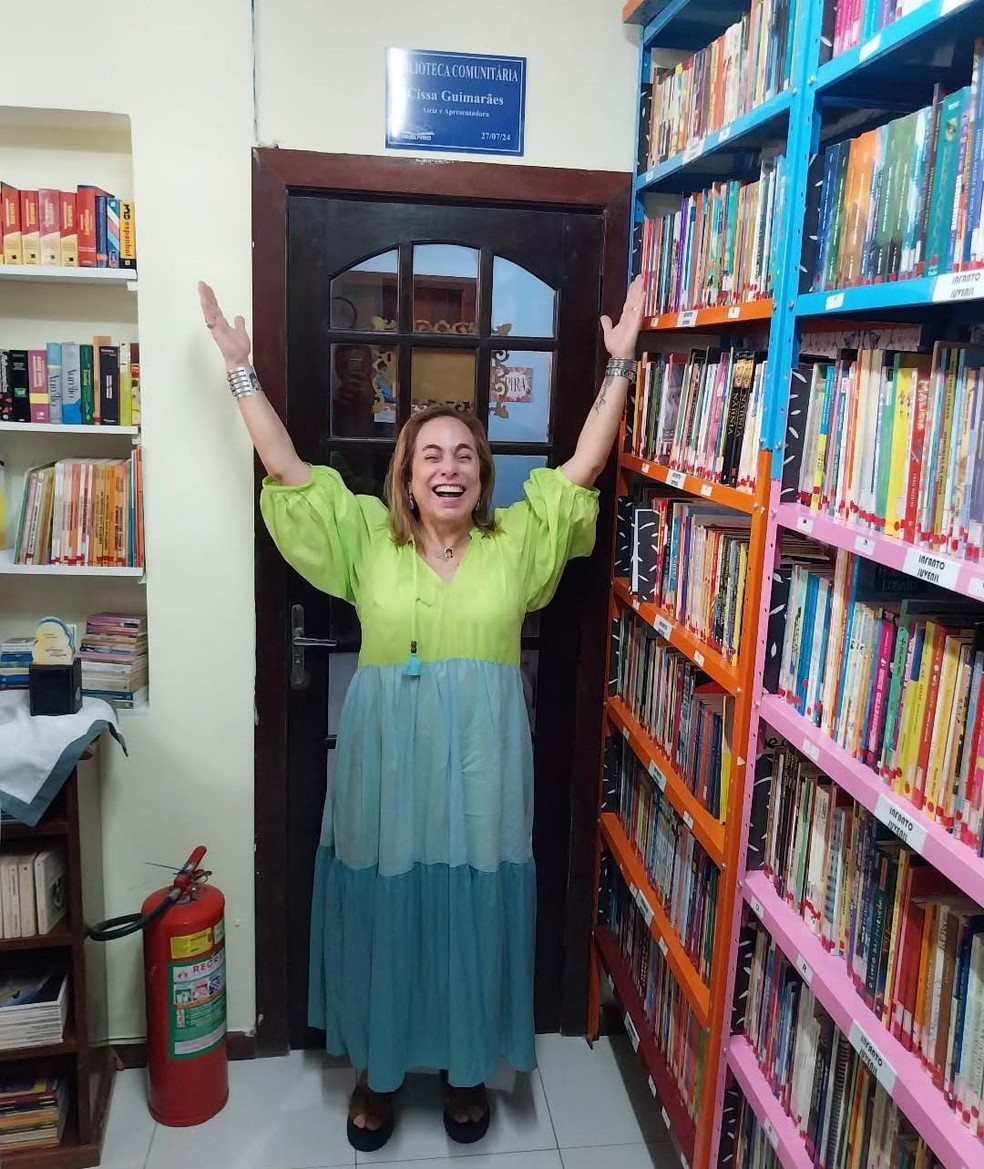 Cissa Guimarães na biblioteca que leva seu nome em Vargem Grande — Foto: Divulgação/Vitor Marcilio