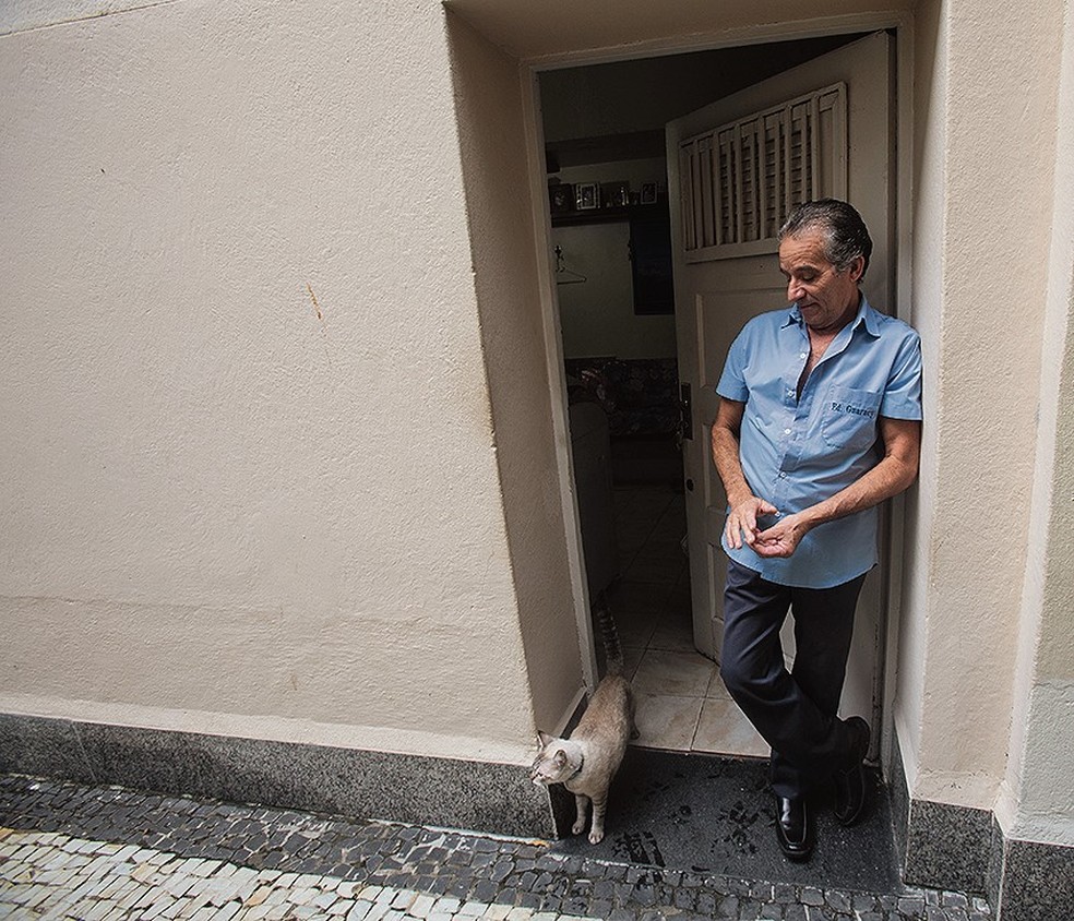 Na Urca,na Rua Roquette Pinto,o bunker do Edifício Guaracy virou há 20 anos a casa do paraibano Djalma Lima,porteiro que divide um espaço de seis por três metros quadrados com a esposa e seu gato.