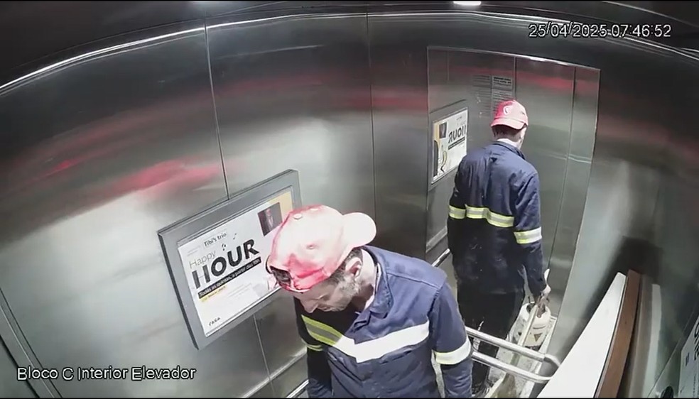 Mendes desceu o elevador com obras furtadas do escritório de arquitetura,no shopping — Foto: Reprodução