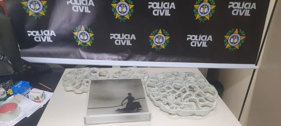 Três obras de cerâmica e um quadro foi recuperado pela polícia — Foto: Divulgação