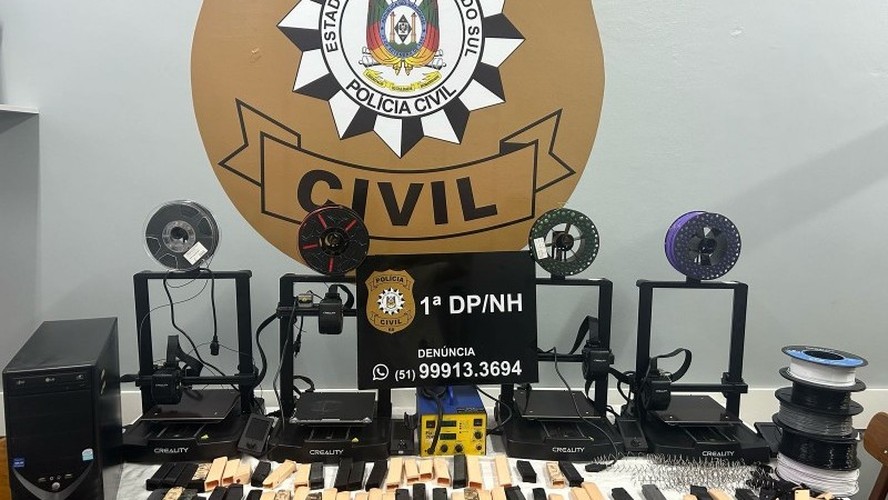 Polícia Civil do Rio Grande do Sul apreendeu quatro impressoras 3D e cartuchos em São Leopoldo — Foto: Divulgação