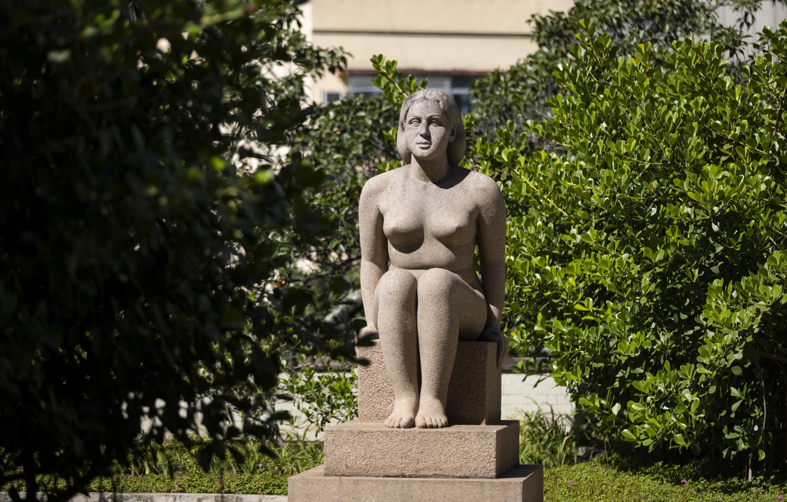 Mulher Sentada,escultura de Adriana Janacopolus nos jardins projetados por Burle Marx — Foto: Márcia Foletto