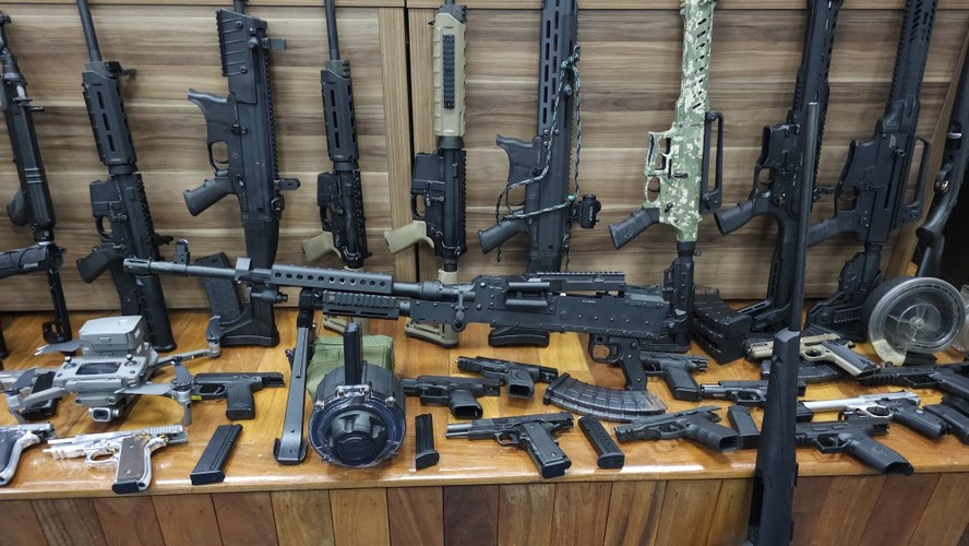 Dinheiro e armas apreendidos na operação conjunta da Polícia Civil e do Ministério Público do Rio,por meio do Gaeco,mirou criminosos que forneciam armas e drogas e lavavam dinheiro para o CV — Foto: Felipe Grinberg/Agência O Globo