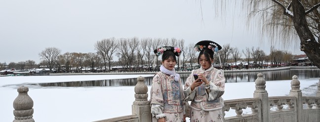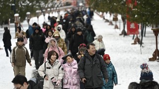 Celebrações do Ano Novo Chinês em meio à neve — Foto: JADE GAO / AFP