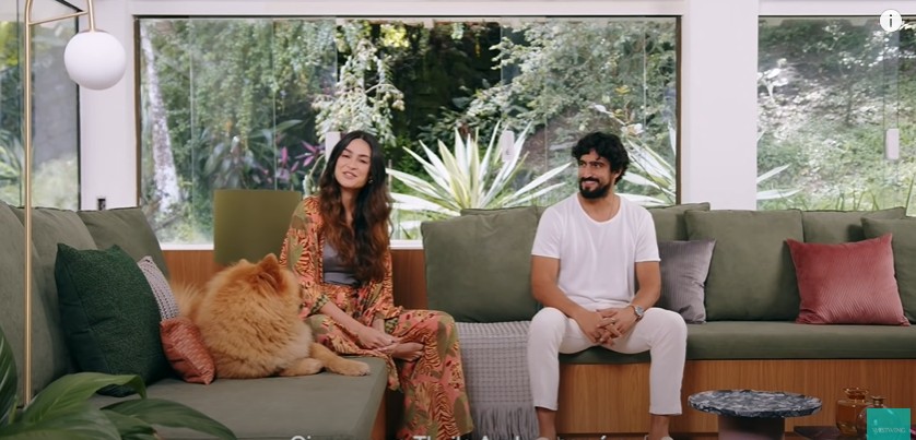 Thaila Ayala e Renato Góes na sala de sua mansão — Foto: Reprodução/YouTubeWestwing