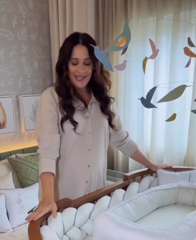 A atriz junto ao berço — Foto: Reprodução