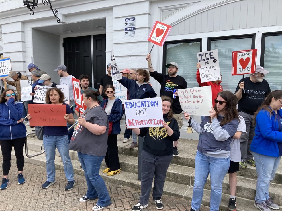 Durante todo o fim de semana,o ICE não se pronunciou sobre o caso,o que gerou uma onda de solidariedade em Milford. Uma manifestação no domingo reuniu centenas de pessoas na Main Street,incluindo estudantes da turma de 2025,que marcharam com becas e capelos logo após a cerimônia de formatura.