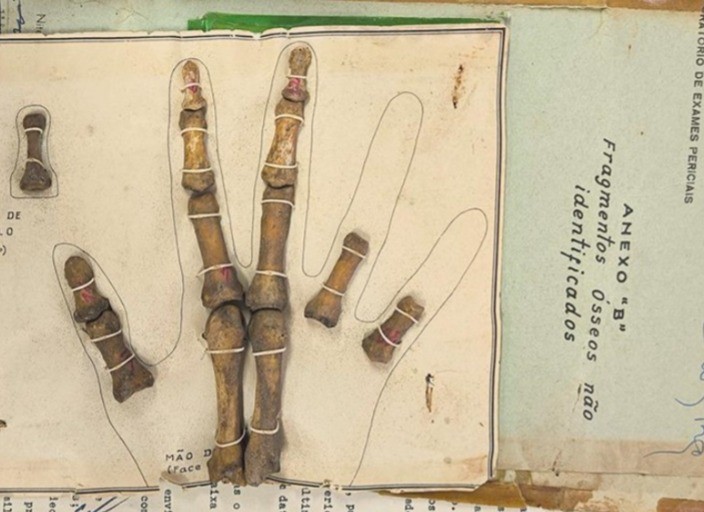 Unhas encontradas durante as escavações para encontrar o corpo,preservadas nos autos do processo de Dana de Teffé — Foto: Reprodução