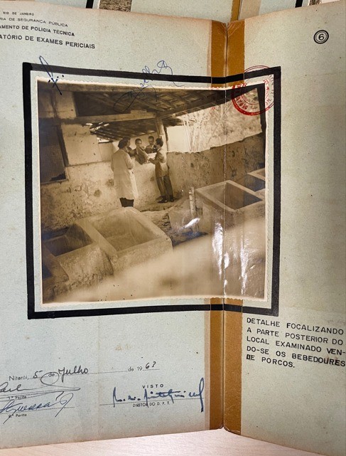 Peritos do Laboratório de Exames Periciais da Secretaria de Segurança Pública analisam material encontrado em chiqueiro de porcos — Foto: Reprodução