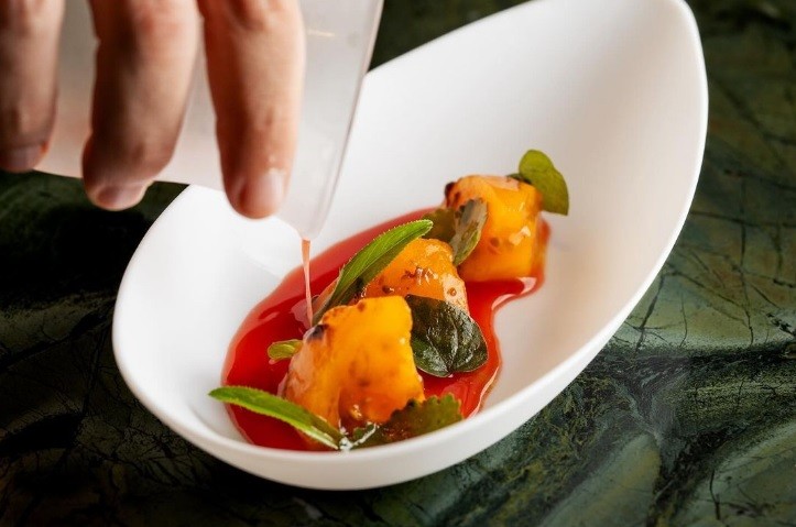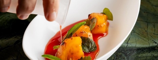 Tomate + alho negro + melancia,do menu de chuva do restaurante Tuju — Foto: Reprodução/Instagram
