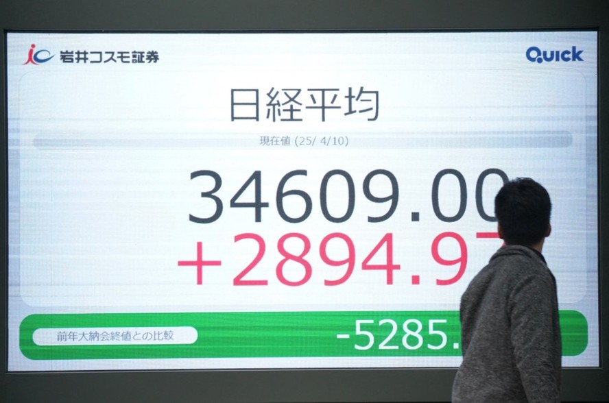 Bolsa de Tóquio - Nikkei - Um homem observa um painel eletrônico que mostra os números do Índice Nikkei na Bolsa de Valores de Tóquio — Foto: Kazuhiro Nogi/AFP
