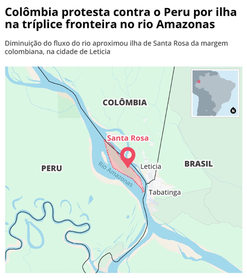 Colômbia protesta contra Peru por ilha na tríplice fronteira no rio Amazonas — Foto: Reprodução