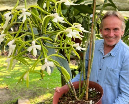 Parte do passeio para visitantes inclui um que é particularmente especial para o floricultor: a Sobralia Piedrahitae,que leva seu sobrenome — Foto: Reprodução/Alma del bosque