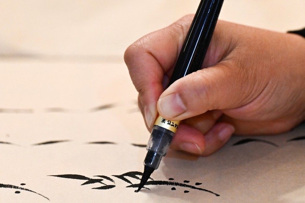 — Quando escrevemos,nossa respiração deve ser pausada para que o pincel se mantenha estável — explica.