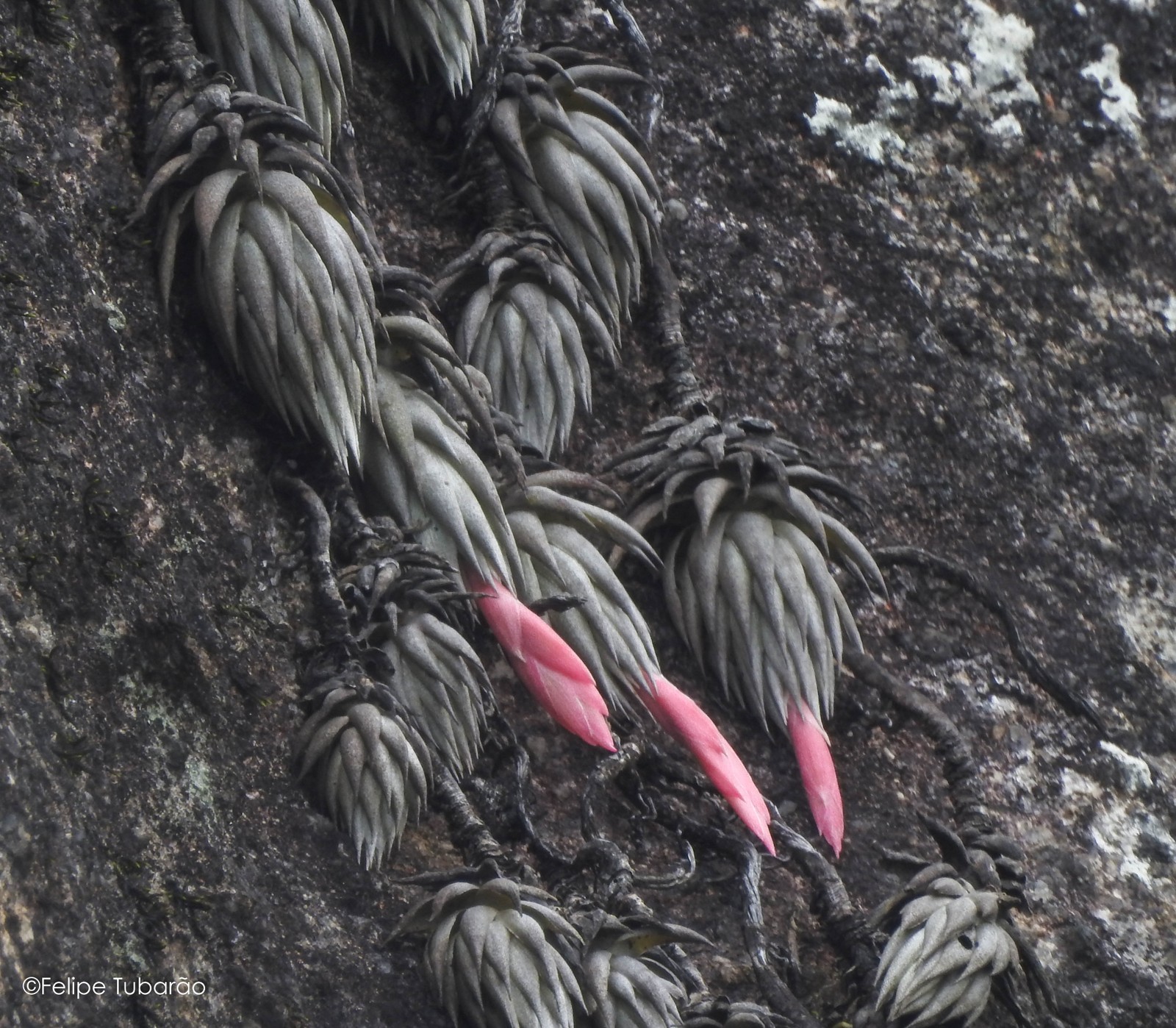 Tillandsia reclinata,Bromeliaceae. Bromélia endêmica do Rio de Janeiro com uma das formas mais diferentes,ocorre somente em poucos afloramentos rochosos das montanhas fluminenses. Atualmente está classificada como criticamente ameaçada de extinção. — Foto: Felipe Tubarão