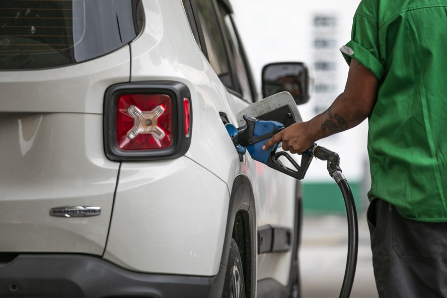 Carro é abastecido com combustível em posto de gasolina — Foto: Guito Moreto / Agência O Globo