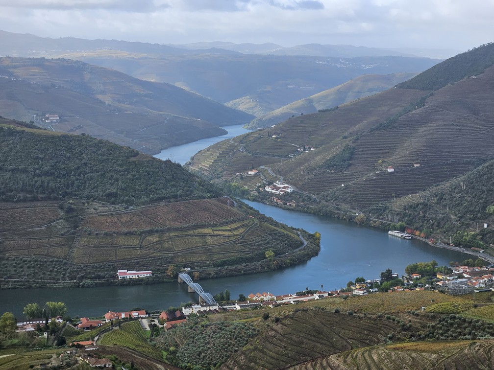 De um mirante no povoado de Casal de Loivos é possível ter uma ideia de como o Rio Douro serpenteia por seu vale,no norte de Portugal — Foto: Rafael Galdo/O Globo
